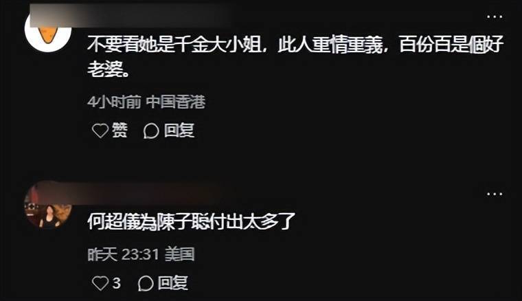 期待何超仪后续的作品,也希望陈子聪能一直保持健康的状态,两人能一直幸福下去,给大家带来更多惊喜。